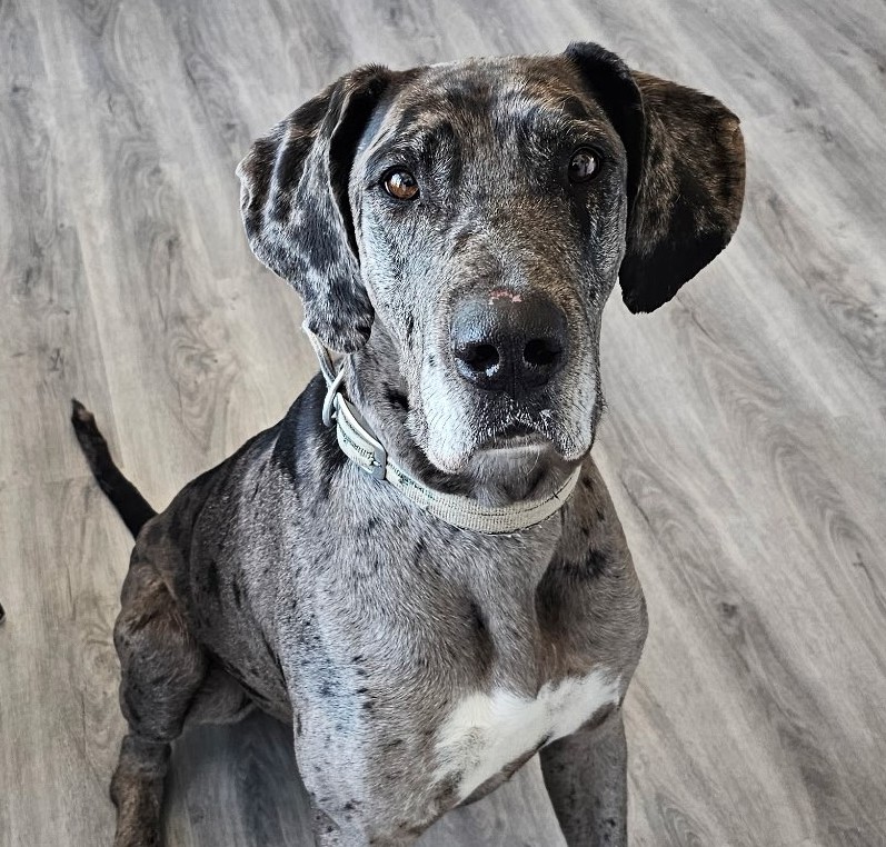 Meet Chevy, a stunning merle Great Dane with a soft heart, a goofy spirit, and a journey that’s taken a lot of courage. At 5 years old, Chevy has made incredible progress in professional training, and she’s ready to find a patient, experienced family who can continue helping her grow.