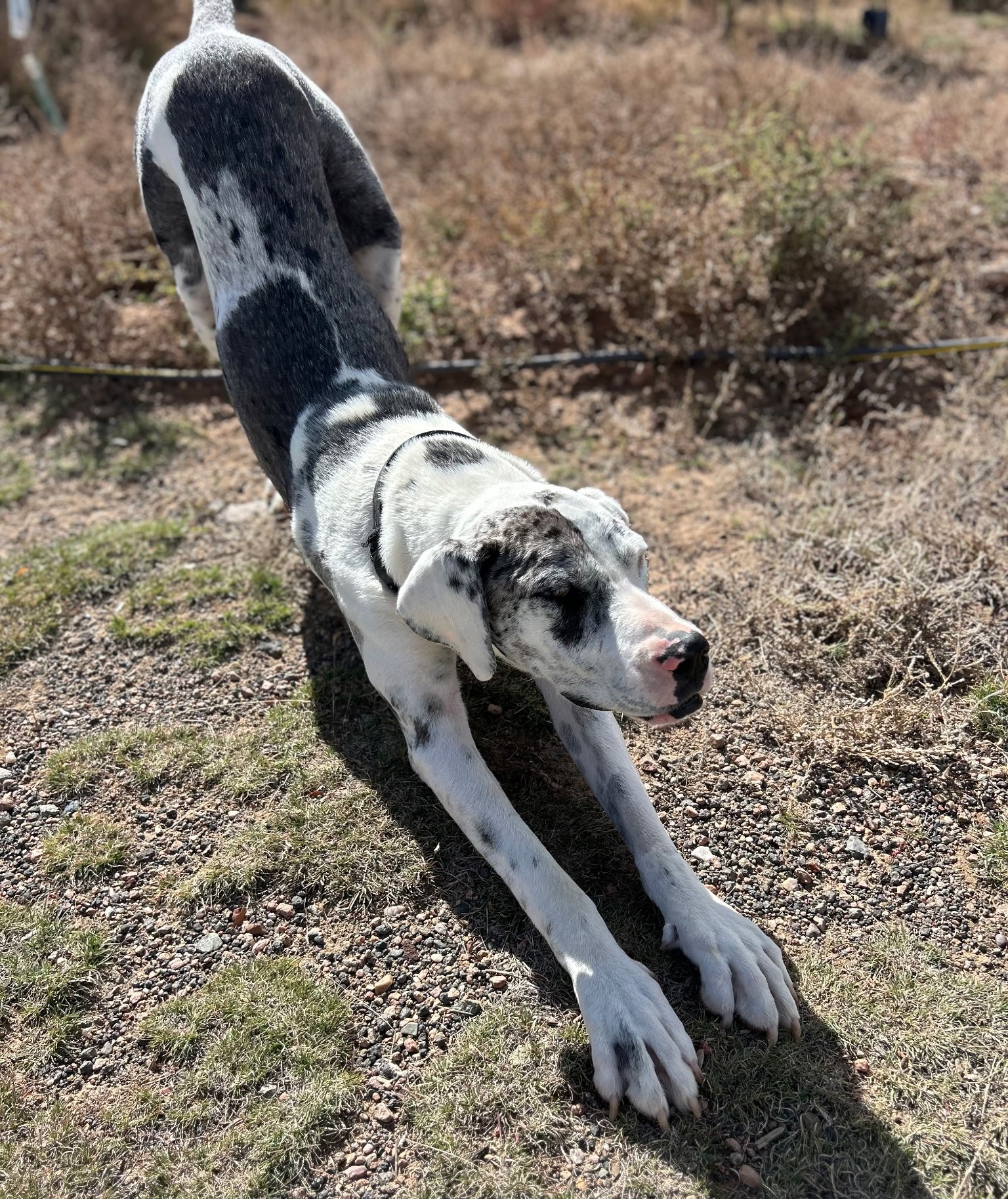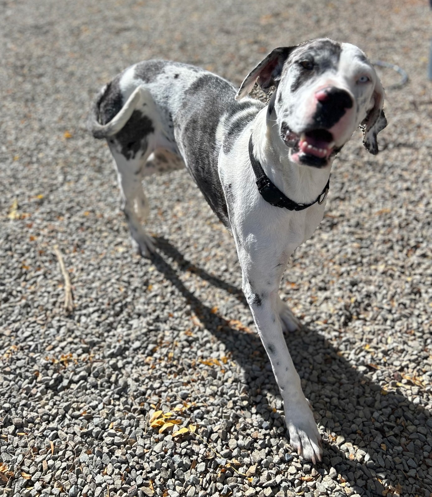 At just 2 years old, Misty is a beautiful harlequin Great Dane who’s finally learning what it means to be safe, loved, and part of a family – and she’s ready to find her forever home.
