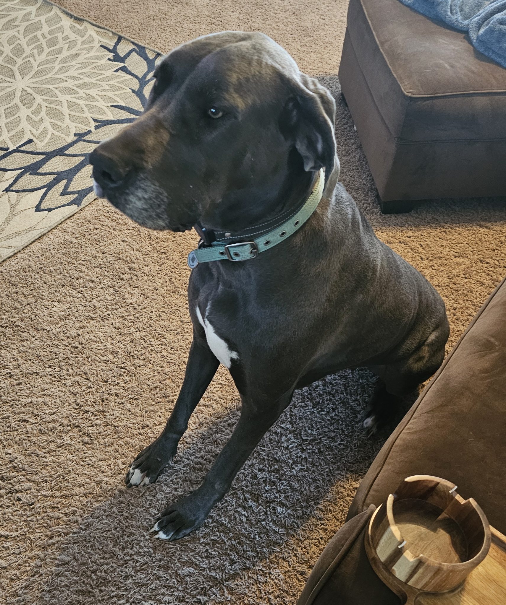 If you are interested in adopting Oakley, fill out an application and reach out to us placements@rmgreatdane.org!